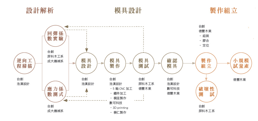 4. 傳承職人精神與技藝。結合產學研團隊,反覆試做,創新邁進。